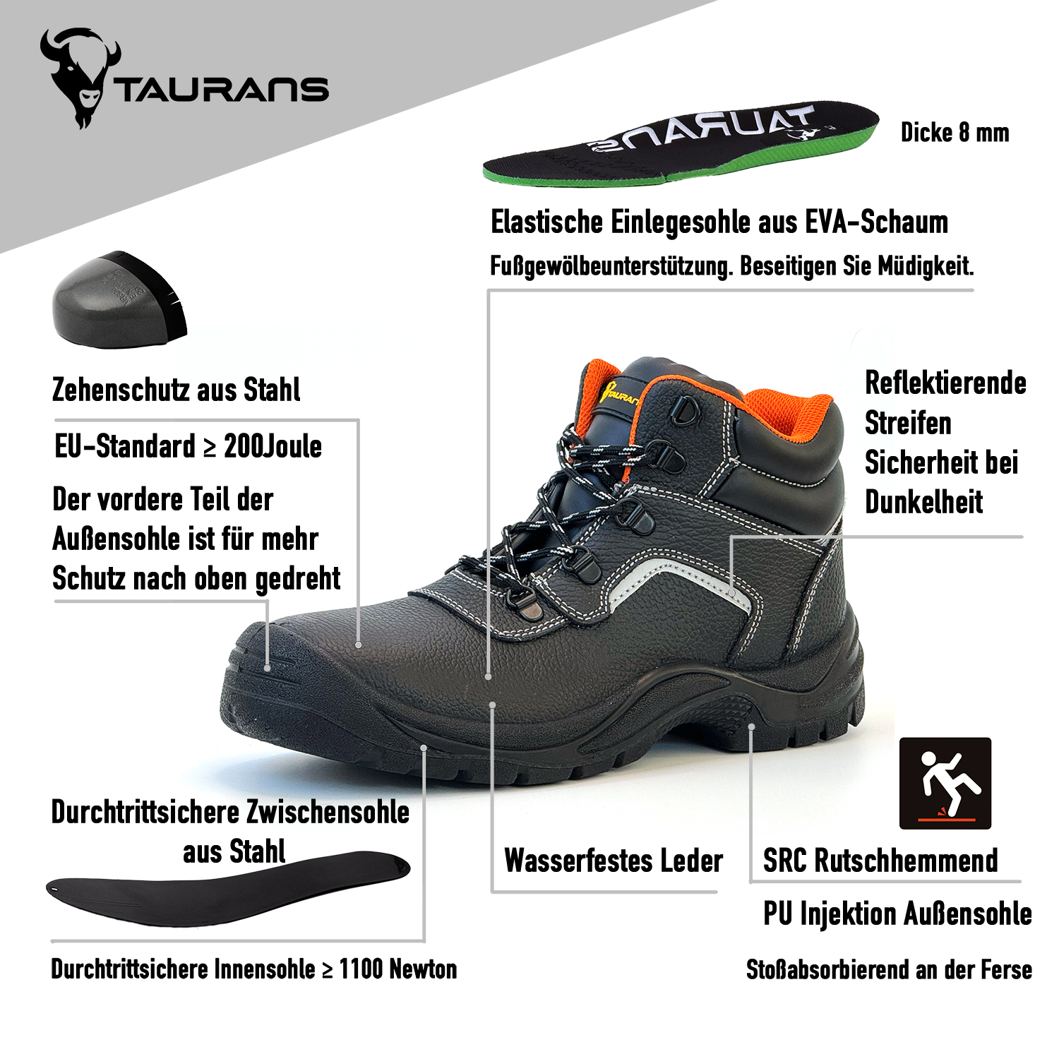 TR101H Preis:39,99€SKU: TR101HObermaterial: LederSohlenmaterial: PUZehenschutz: Schutzkopf aus StahlDurchstichfestes Material: StahlplatteStandard: S3 SRC EN ISO 20345:2011Einlegesohle:Abnehmbares HI-PLOYSize(EU):35-50